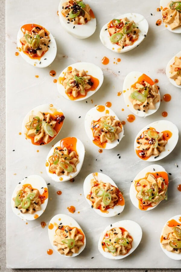 Rate this RecipeMiso-Sesame Deviled Eggs with Chili Oil & Scallions